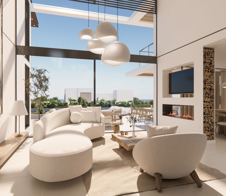 An open and bright architectural design blurs the boundaries between indoors and outdoors combining sophistication and luxury with the charm of the Mediterranean coastline.