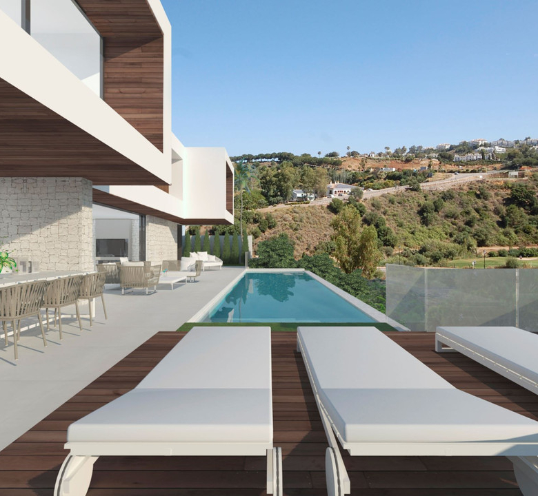 Excellent location for a luxury villa with golf views, 12 minutes away from the beach. South facing, infinity pool. Inside urbanización La Cala Golf.