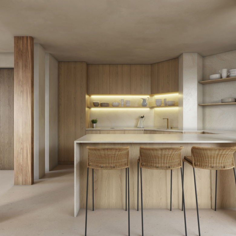 – Designer open-plan kitchen with central island, ideal for entertaining or intimate family moments.