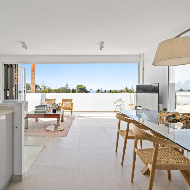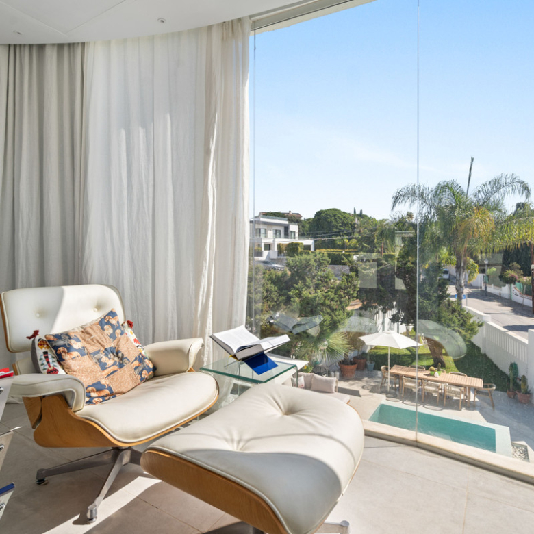 This iconic villa is located in the private urbanization of Marbesa, close to the beach, on the east side of Marbella. It is 400 meters walking distance or 10 minutes walk from the Mediterranean Sea and the beach, 1.5 km from the beach and the protected dunes of Cabopino and 1.9 km from the hotels Marriot and Don Carlos and Nikki Beach Marbella. Marbesa is a quiet and prestigious neighborhoud known for its beautiful coastline and its proximity to Marbella.