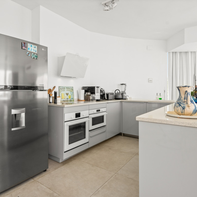 The villa has a beautiful roof terrace with swimming pool with views over the coast to Gibraltar and Africa. It is ideal for organizing parties or simply enjoying the breathtaking views. The first floor, where you will find the living room with open kitchen, also offers fantastic sea views. On the ground floor, which overlooks the garden and the infinity pool, there are 2 bedrooms and 2 bathrooms. In the semi-basement there is a 3rd bedroom and the garage with a remote controlled electronic gate. All bedrooms have shutters, air conditioning and heating, on electricity. Both the roof top pool and the pool in the garden are heated.