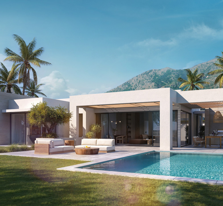 Majestic villas in the picturesque mountains offer a unique opportunity to savour the tranquil beauty from dusk to dawn, as the sun casts a golden glow over the coastal landscape.