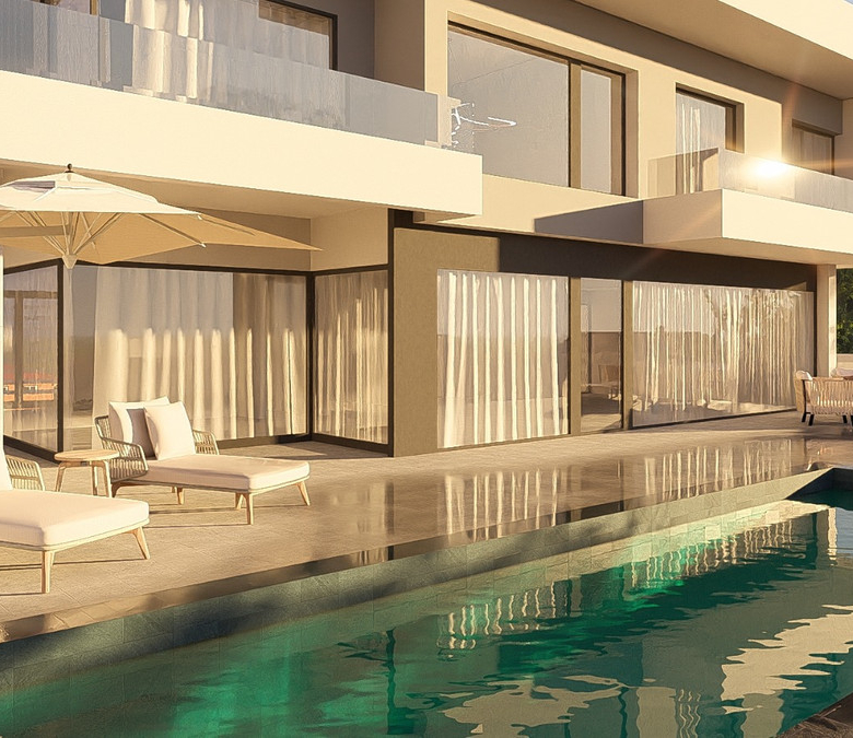 – Large Living Room: With direct views of the pool, perfect for family and social gatherings.