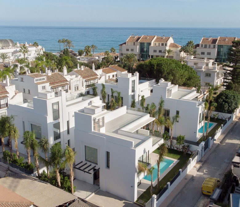 The marvelous new modern villa for sale is located in one of the most luxurious residential areas in Marbella – Golden Mile, in a secure urbanization Rio Verde, just 100 meters from the beach.