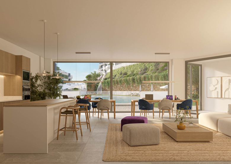 This development is inspired by the luxury of a tropical residence, where water and vegetation are the main characters and the outdoor spaces form part of the daily life of each home. Its privileged location, in Mijas, and its communal areas, with swimming pool and gym are surrounded by gardens for you to enjoy the wonderful climate and lifestyle of the Costa del Sol.