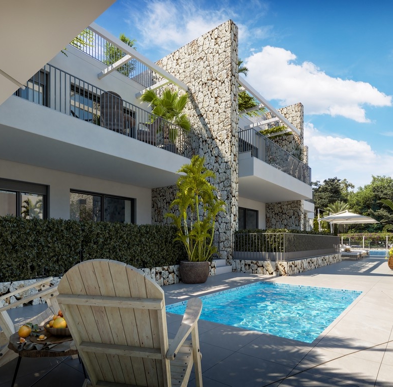 The apartments will have two communal pools, one for children, and landscaped garden areas to enjoy the wonderful Mediterranean climate. All this is just 100 metres from the nearest beach cove.