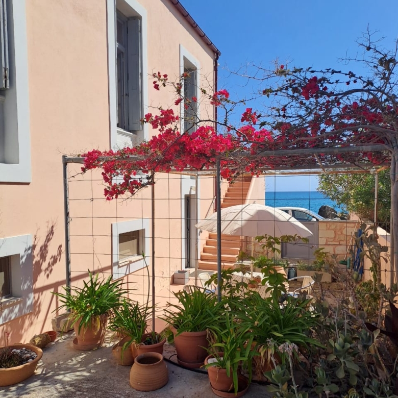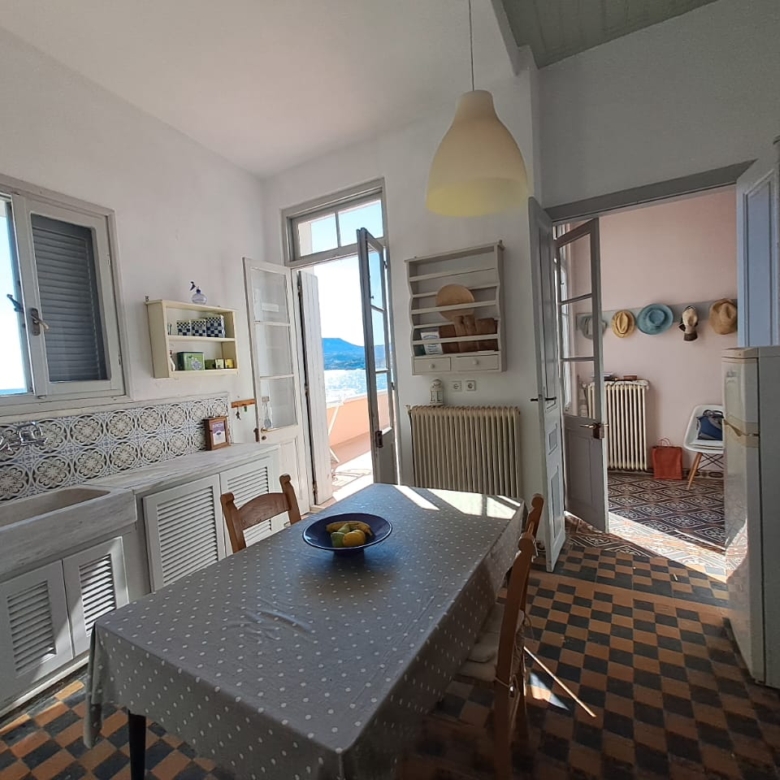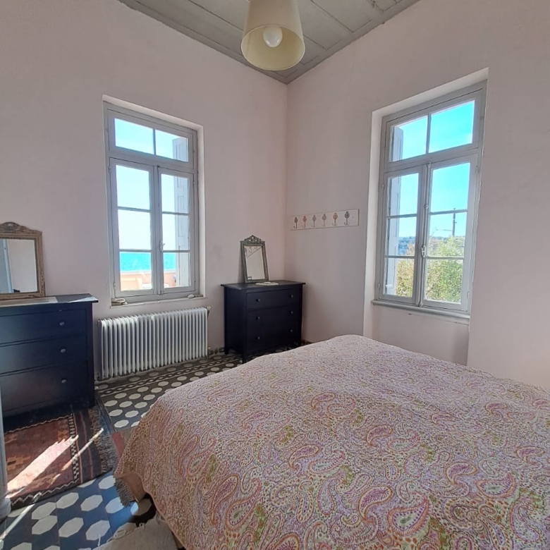 The house is spacious 283sqm, set on a 250sqm plot of seaside land. The spacious upper floor features three generously sized bedrooms, a beautifully appointed bathroom, a fully equipped kitchen, and an inviting lounge and dining area. Every room has been thoughtfully designed, preserving original architectural details that have been carefully restored during recent renovations.