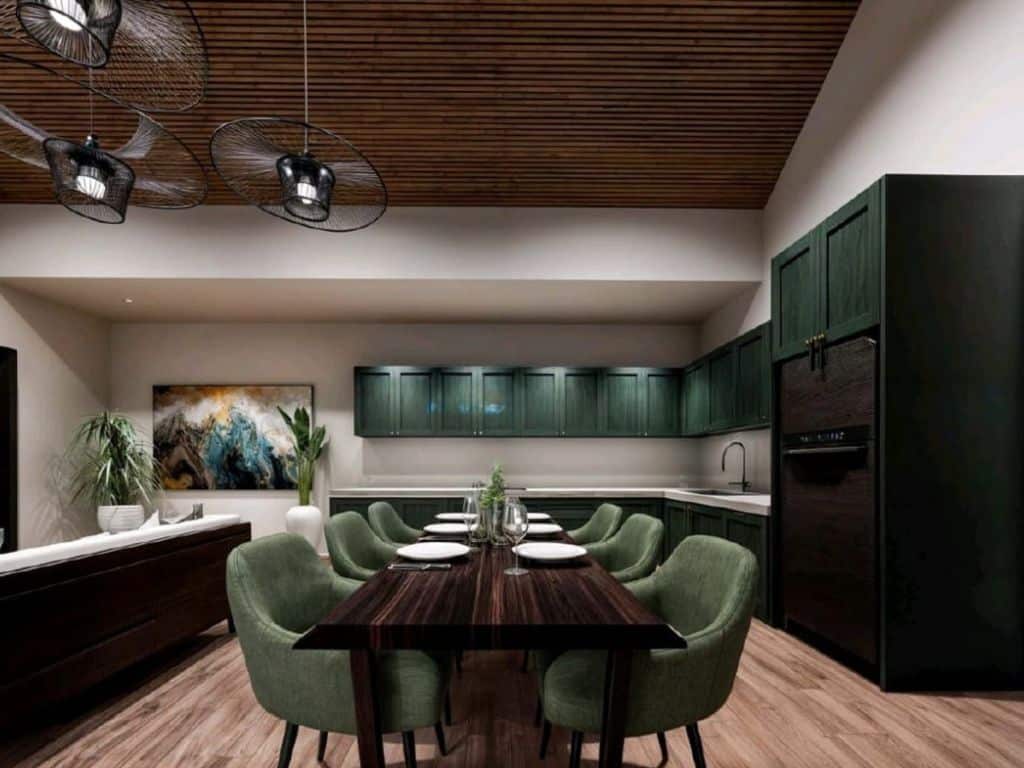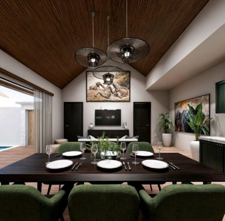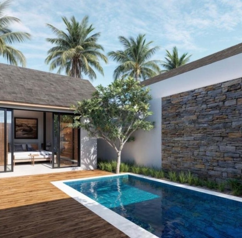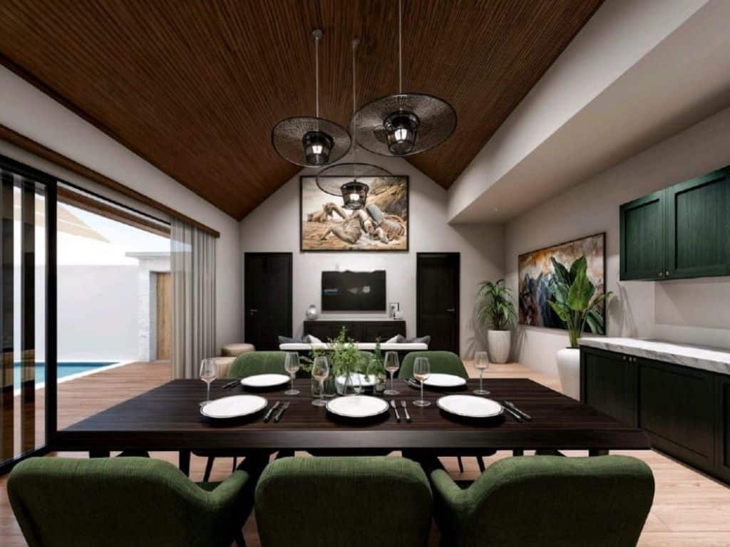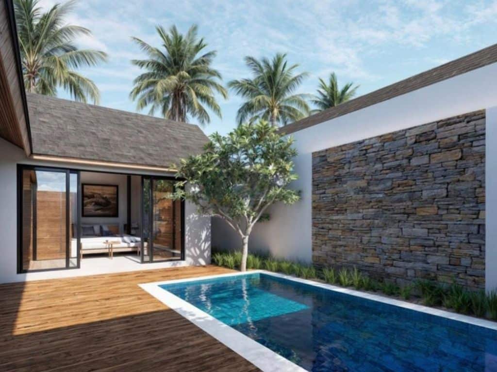The contemporary style villa is offered as a LEASEHOLD of 23 years with extension options for a further 20 years and will be completed in 2024. It has 3 bedrooms and 2 bathrooms and sits on 230 sqm of land with a floor area of 153 sqm including a mezzanine. The property features an enclosed living/dining area that opens up with sliding doors to the 5m x 1.5m swimming pool. It also includes a modern kitchen and a carport. This property comes partially furnished (built in furniture only)
