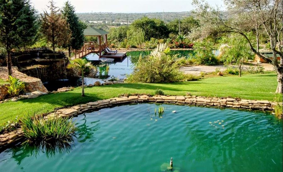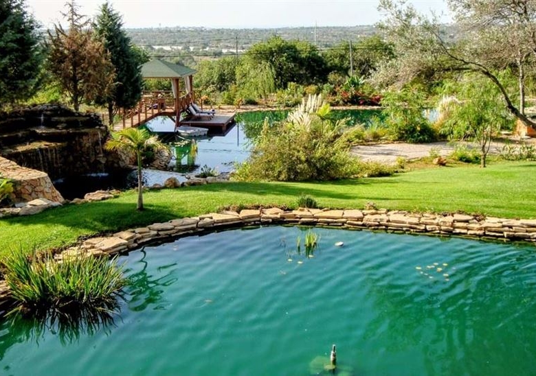 – Landscaped gardens with waterfalls, koi ponds, lakes, and water jets