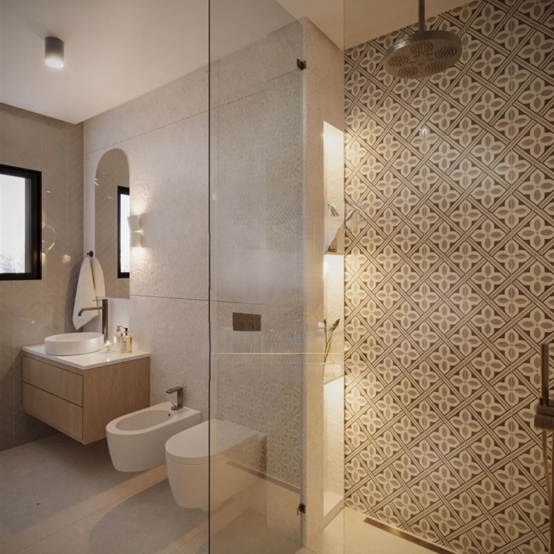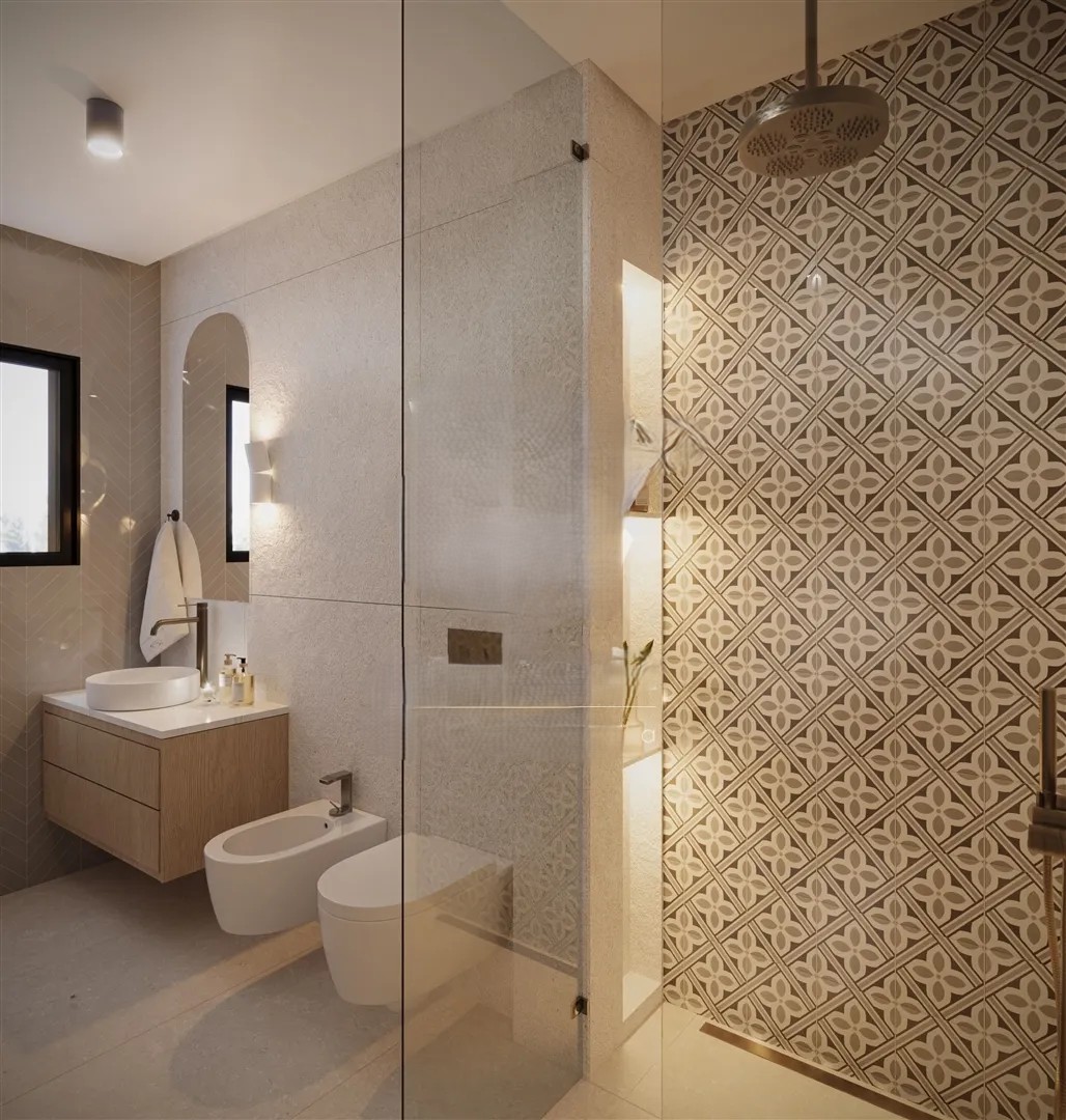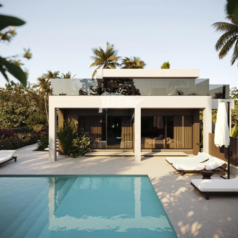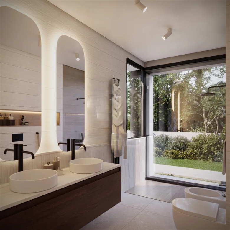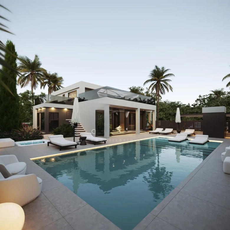 This villa has been designed with high-quality materials, offering spacious and bright areas that ensure an airy and comfortable atmosphere. Its interior has been created to provide a welcoming environment, standing out for its refined lighting. At night, the lights and LEDs give the house a striking and sophisticated ambiance. For added comfort, the villa features underfloor heating and air conditioning, ensuring a pleasant environment throughout the year.