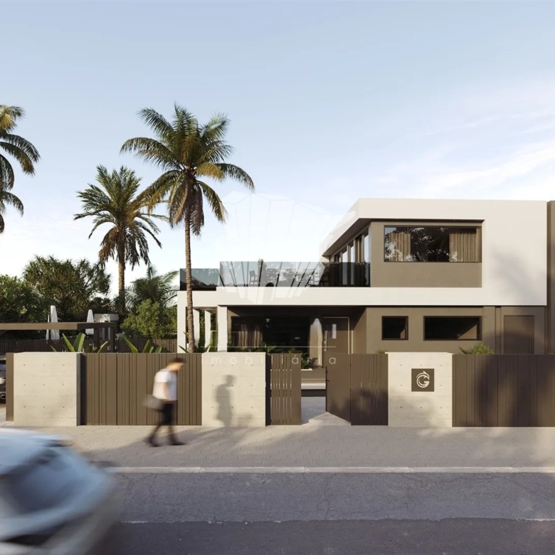 The house is distributed over two floors: on the ground floor, you will find an elegant entrance hall, a modern fully equipped kitchen with an island, a spacious dining room, and three large en-suite bedrooms. On the first floor, there is an exclusive suite and a generous living room with access to two magnificent terraces, where the ocean view is simply spectacular.