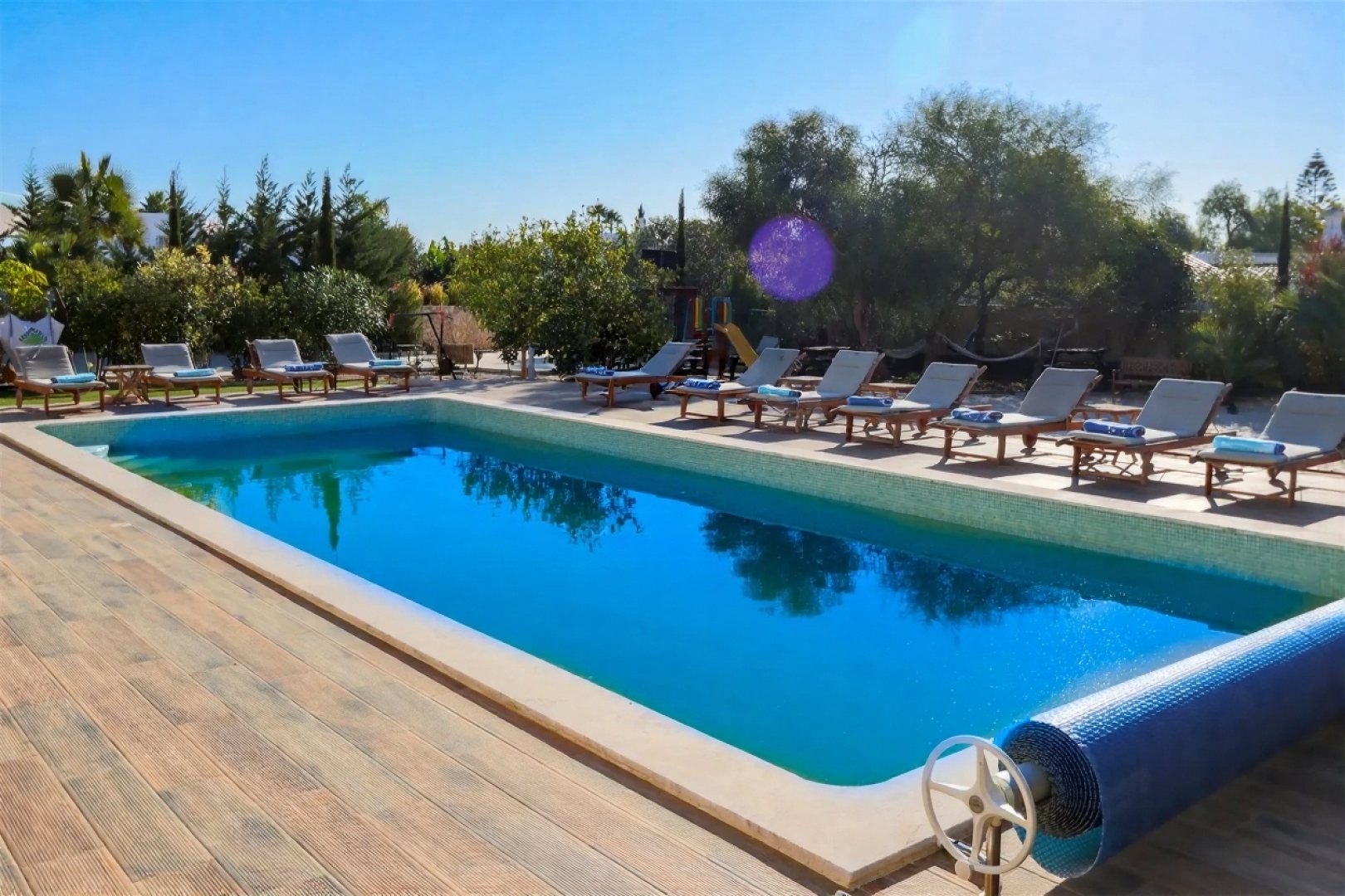 With two floors, this property boasts a strong rental history and can continue to provide excellent returns. Ideal for family vacations or as a permanent residence, offering everything needed to feel at home. From the beautiful garden with mature trees to the heated swimming pool, volleyball area, children´s playground, snooker table, foosball table you´ve got all you need for a wonderful time.