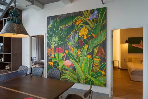 This Bangkok penthouse is called “Flamingo Lounge” due to its collection of unique art pieces, stunning sweeping views and the flamingo tiled private rooftop