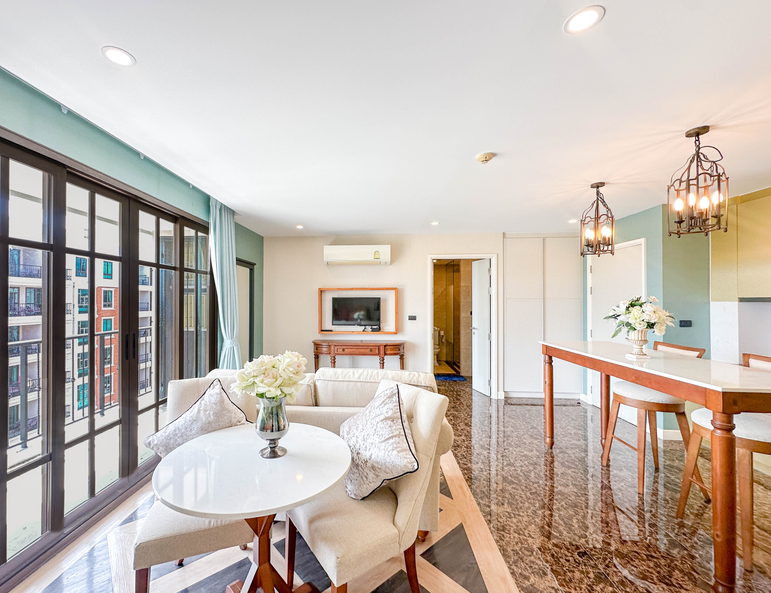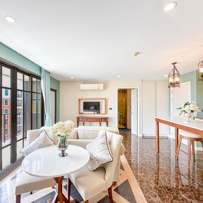 Step into Spanish elegance with this beautifully designed 2-bedroom, 2-bathroom condo at Espana Condo Resort Pattaya. Spanning 73 sqm, this fully furnished unit offers a spacious layout and refined décor, complete with: