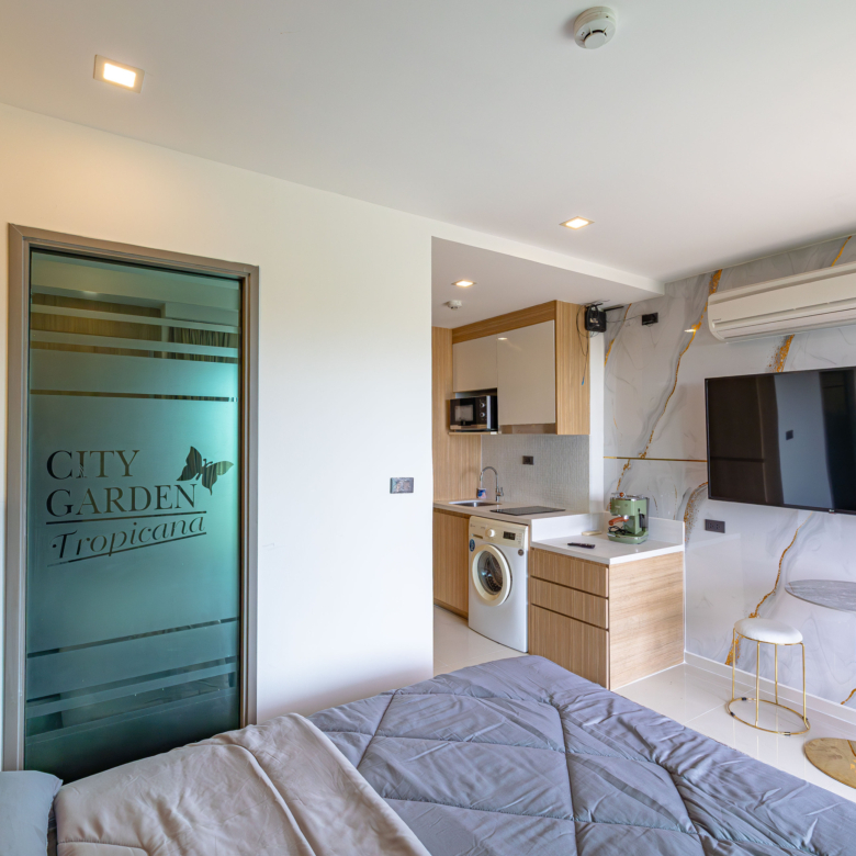 Priced to sell at 2,200,000 THB! Secure your 6th-floor sea view studio in the highly sought-after City Garden Tropicana, Wongamat. This fully furnished unit is available in the rare Foreign Name quota, making it a perfect investment or holiday home.