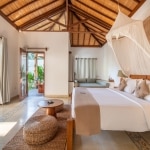 With 1170 square meters of bright and airy living spaces spread over three levels the villa offers five bedrooms and five bathrooms, expansive verandas to capture the sea breeze, and a generous master suite that opens onto a stylish circular pavilion – ideal for enjoying those gorgeous Bali sunsets. The property also has large staff quarters and two car garage.