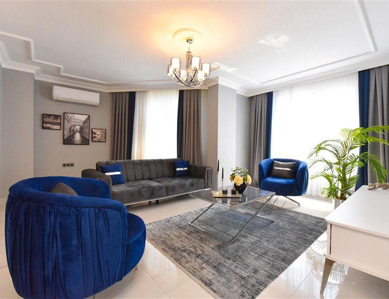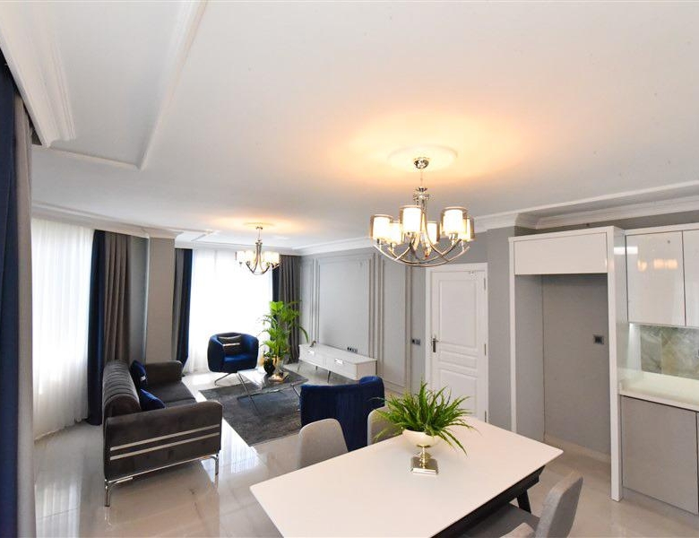 This fully furnished 2-bedroom apartment is located on the 8th floor of a modern 12-story building in the popular Cebeciler Residence 9. Offering120 m²of indoor space and2 balconies, the property enjoys views of the city and the Taurus Mountains, just250 meters from the beach.