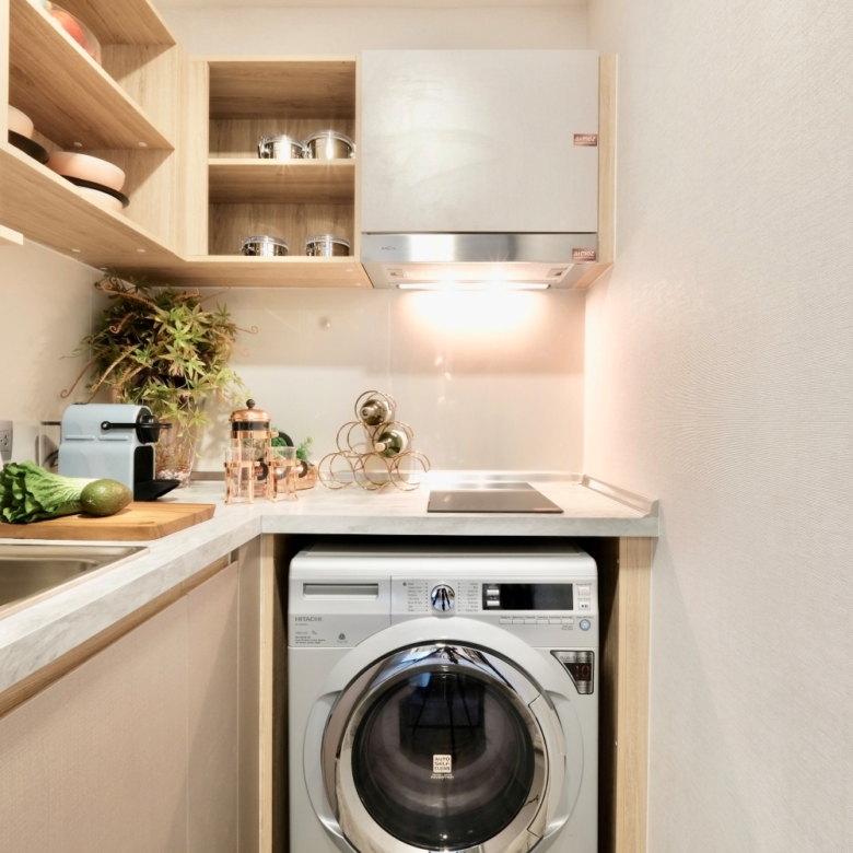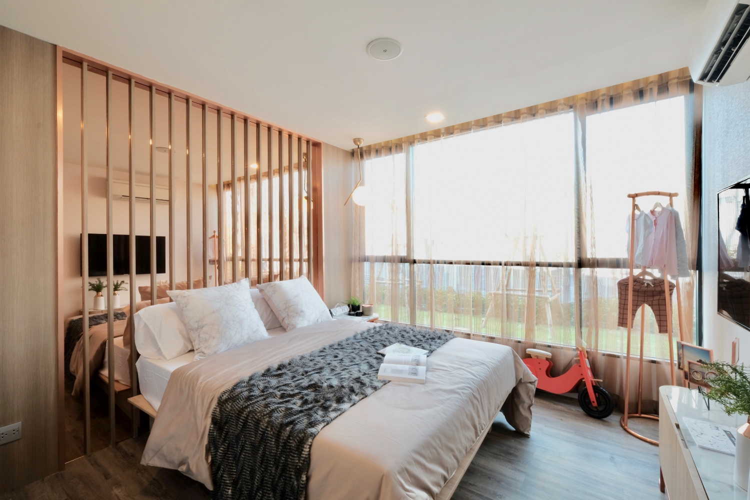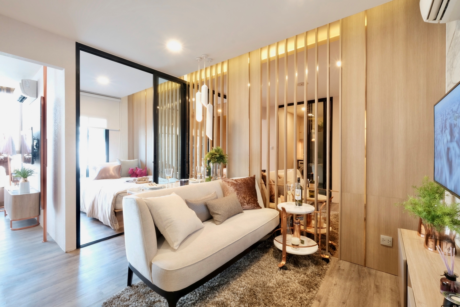 This elegant 1-Bedroom Plus unit at Atmoz Ratchada–Huai Khwang combines modern design, soft natural tones, and smart space optimization — creating a peaceful city retreat for professionals seeking balance between work and relaxation.