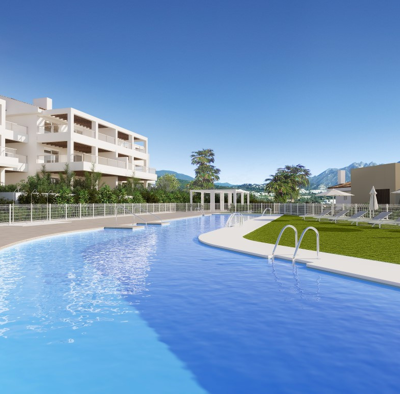 This development is distributed in 5 buildings of only 12 apartments of 2- and 3-bedroom apartments and penthouses, all with large terraces, nestled on a pretty hill and facing south-east towards the Golf Valley, with an exclusive sense of tranquillity and security that you won't find at any other development in the area.