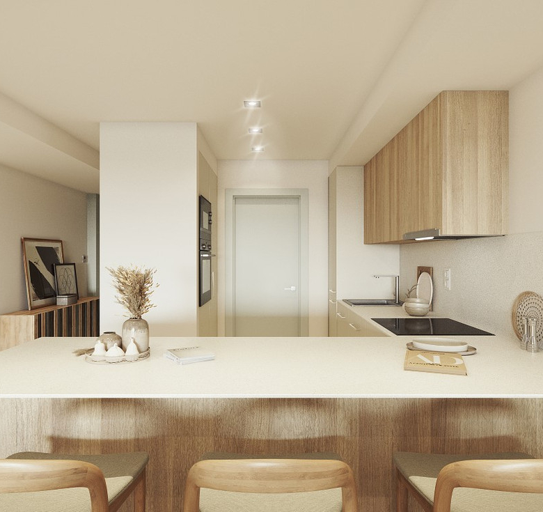 Landscape-style terraces merge into the living rooms of each home with large patio doors to make the most of the natural light available, as well as to enjoy the spectacular views outside, with the homes benefitting from the beauty of the surrounding scenery, providing a sense of relaxation and tranquillity for residents to enjoy.