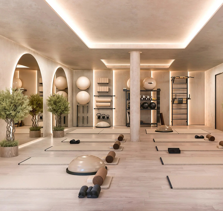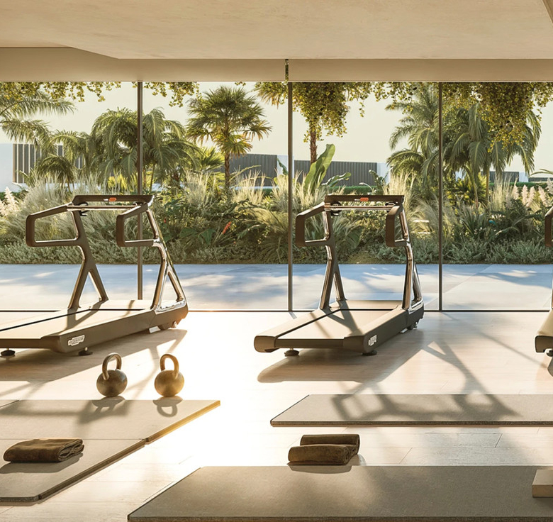 Residents enjoy boutique-style amenities, including a wellness area with sauna and steam bath, coworking lounge, concierge service, and a beach-style pool surrounded by meticulously designed Mediterranean gardens.