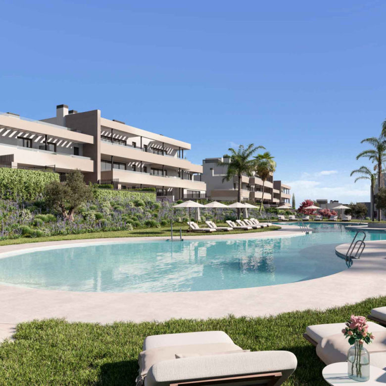 This modern residential development comprises 134 homes with 2, 3, and 4 bedrooms, situated in a natural oasis. Located in Casares Costa, it offers magnificent golf course views and high-quality services at an unbeatable price.