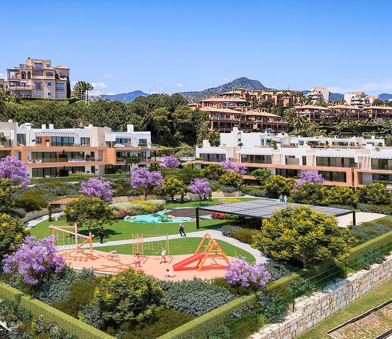New project of luxury 2 and 3 bedroom apartments and penthouses in the last plot in prestigious Atalaya, on the junction of the golden triangle Marbella – Benahavis – Estepona, in a gated exclusive community full of amenities with gym, heated pool and jacuzzis, lush gardens and yoga lake, in walking distance to facilities and within a short drive to the beach, Puerto Banús and Marbella.