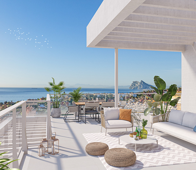 Apartments and penthouses of 2, 3 and 4 bedrooms, in a spectacular complex, with swimming pools, green areas, gym and social lounge, located in Alcaidesa, with stunning views of the sea and the Rock of Gibraltar.