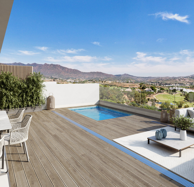 This project is an exclusive new-build urbanization located in La Cala de Mijas, Málaga, Costa del Sol. Designed for those seeking a tranquil lifestyle close to golf. The project consists of 48 modern homes distributed in 4 blocks, with spacious terraces, sea views and situated on the front line of golf.