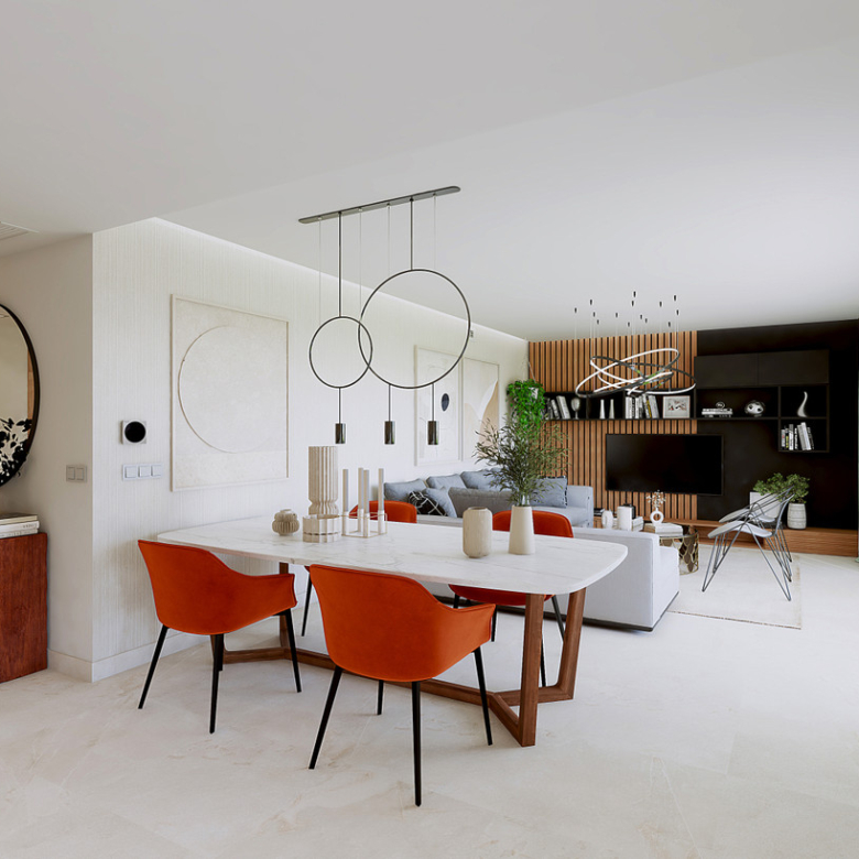 The homes have a modern distribution with the "total living" concept where all the space is utilised, and with a large living room integrating the terrace via the large windows.