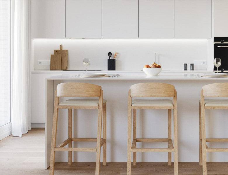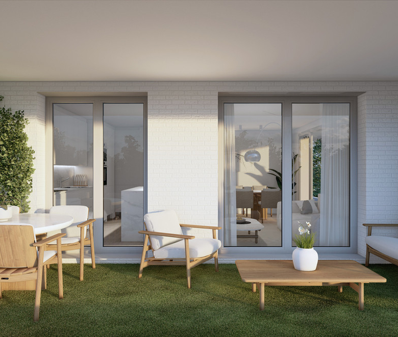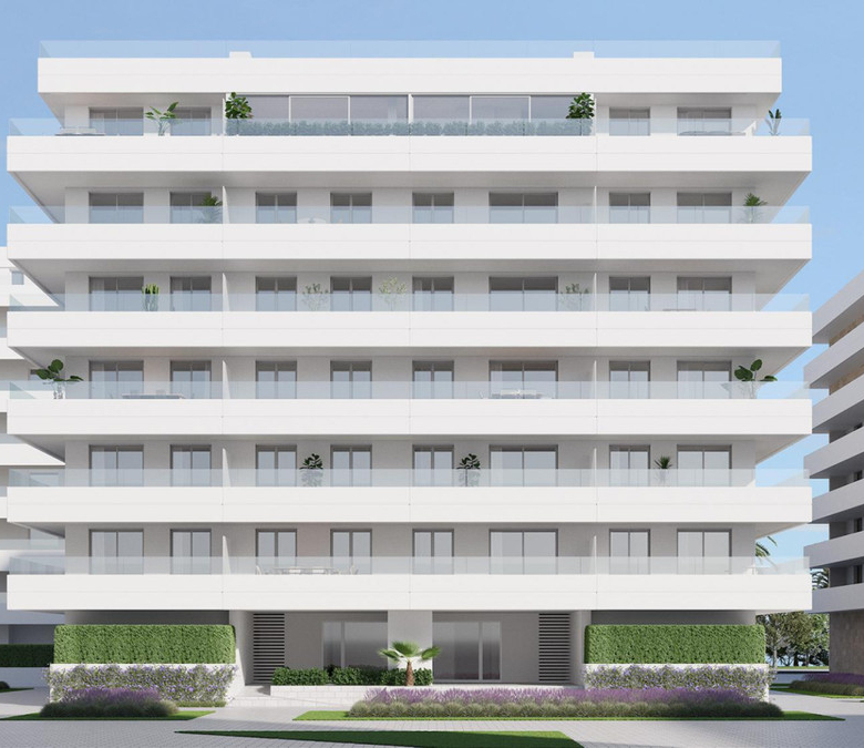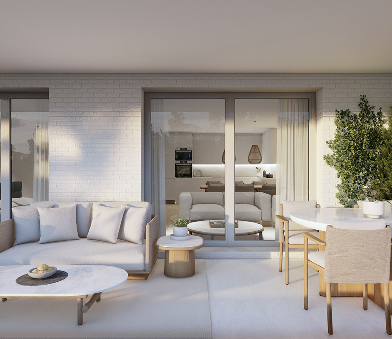 This project seeks to maximize the connection of the buildings with the beauty of the outdoors. For this reason, the team, together with Herrero-Osborne Arquitectos, have designed a building with large terraces with continuous glass railings and large windows that take full advantage of natural light and stand out against the white of the building, creating an elegant and modern design.