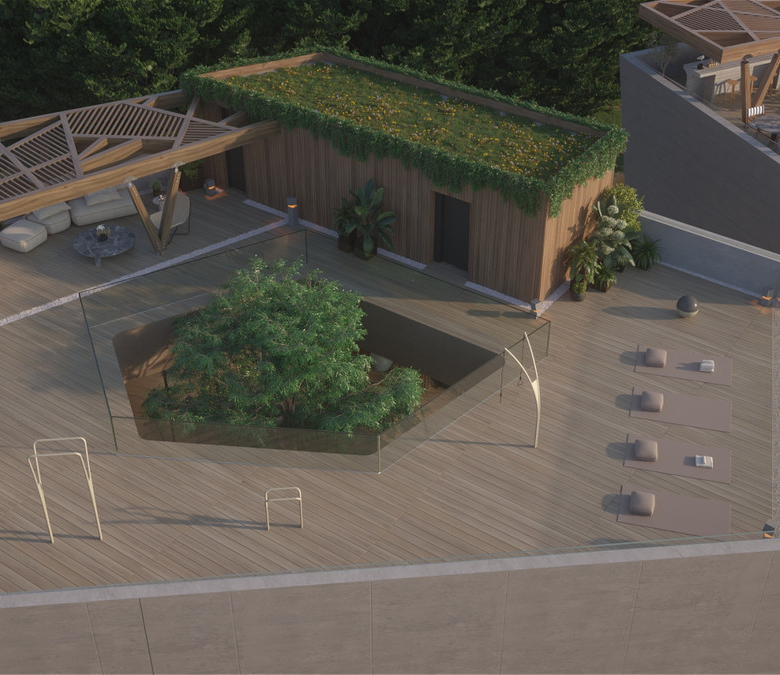 The project's commitment to the highest standards is reflected in all areas, especially in its impressive and professionally landscaped communal spaces. The Social Club, with its innovative and avant-garde architecture, located in the highest part of the project, houses a complete SPA, a 200 sqm indoor gym, an outdoor gym with a yoga zone, a coworking area and an indoor heated pool.