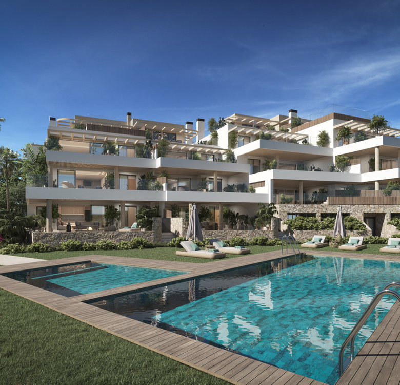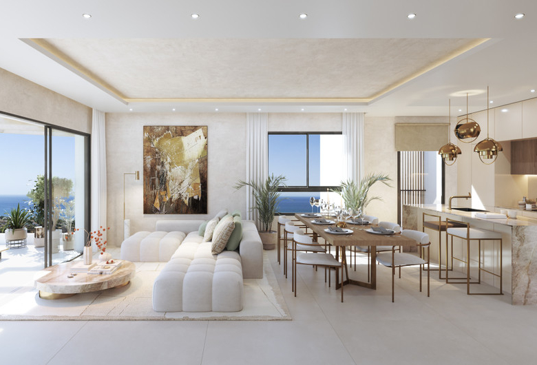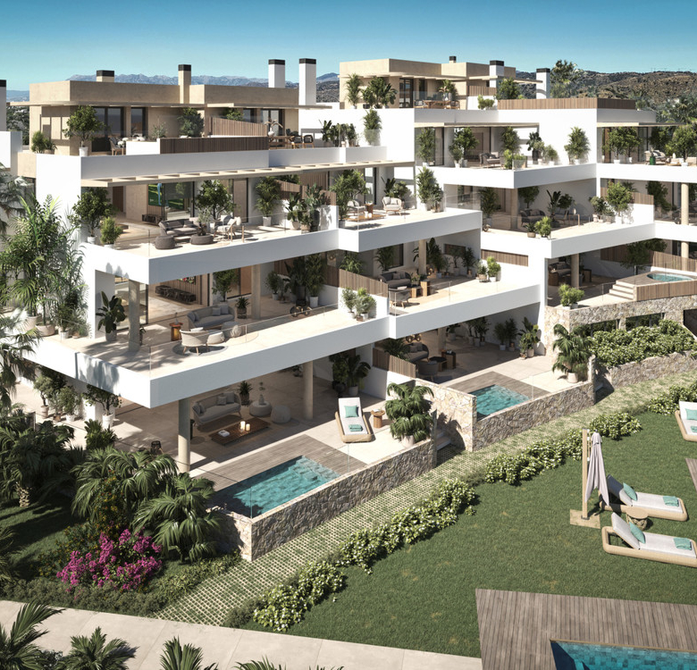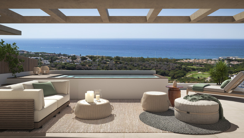 The development epitomizes the zenith of contemporary life in Marbella, renowned for its serene ambiance and breathtaking panoramic vistas that stretch from the lush pine canopies to the shimmering Mediterranean Sea. This exclusive enclave features 12 state-of-the-art apartments and penthouses, offering 3 to 4 bedrooms, most with en-suite bathrooms, meticulously arranged to maximize the uninterrupted views of the sea and mountains, distributed across two distinct buildings. Nestled in Cabopino, an area famed for its stunning beaches—hailed as the most beautiful natural beaches in Marbella—and its ecologically valuable dune reserve, the development stands out as one of the most coveted locations on the Costa del Sol. Residents enjoy a plethora of nearby entertainment options and amenities. The private gated community boasts secure perimeter fencing, lush green spaces, a communal pool, sauna, gym, and a co-working area.