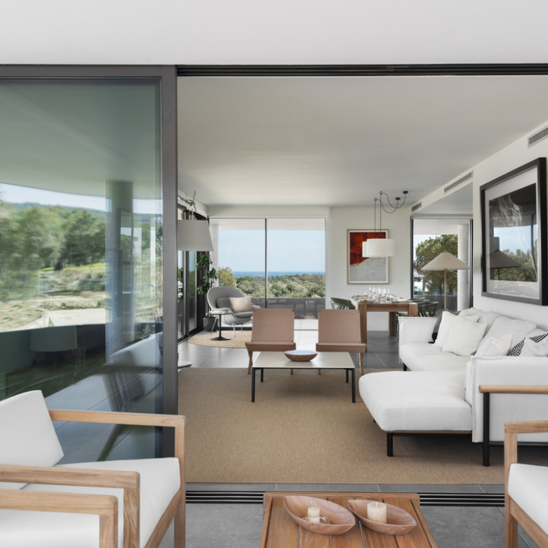 With a total area of between 181 and nearly 524 square metres, these generously proportioned apartments include underfloor heating and Aerotherm air-conditioning systems. The modern, sleek interiors blend seamlessly into the wonderful terraces, perfect for al fresco dining and relaxation.