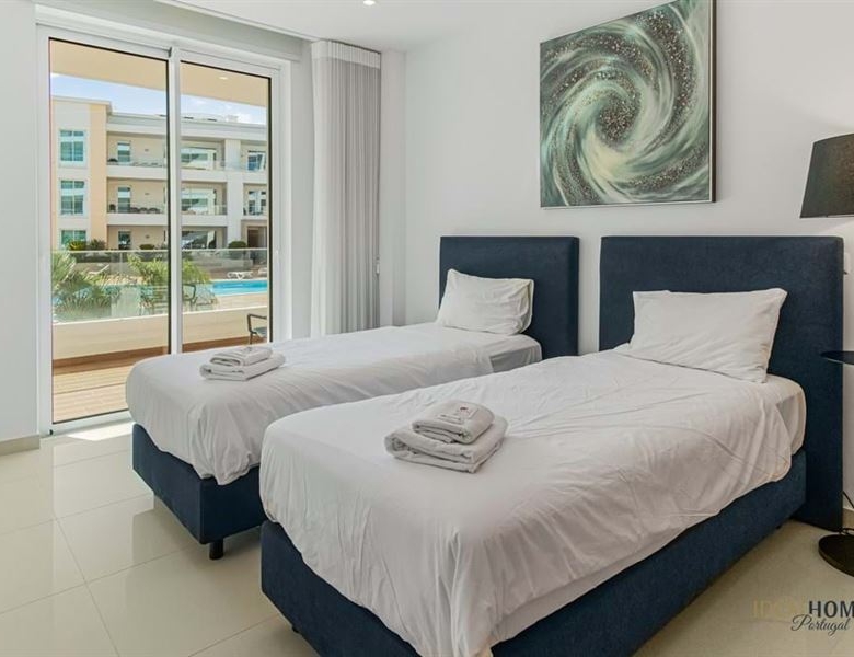 The apartment boasts three generously sized bedrooms, including a luxurious master suite with its own en-suite bathroom featuring a massage bathtub. The two additional bedrooms share a secondary terrace with the master bedroom overlooking the sparkling swimming pool, an ideal spot to enjoy your morning coffee or unwind in the evening.