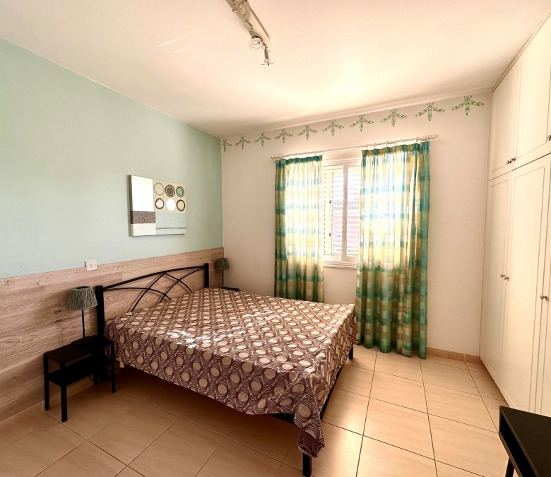 This well-maintained project is located in one of the most desirable areas of Paphos – Universal. Within walking and short distance from the project there are shopping areas, Kings Avenue Mall, schools and universities, city centre and beaches of Pafos. The property has an open plan large living/dining areas and a kitchen. Patio doors from the living area lead out to a good sized veranda and yard, there is also access to the communal swimming pool of the project, Guest WC Upstairs there are 3 large double bedrooms with fitted wardrobes and balconies with pool and town views and a family bathroom. Covered parking available. The townhouse is in an excellent condition.