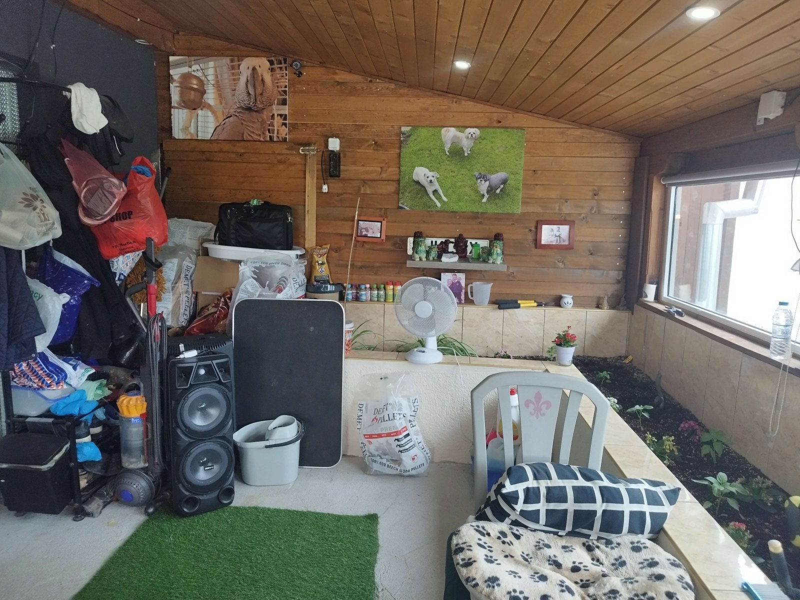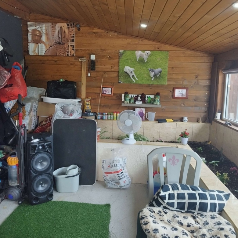 The huge garden is 27,750 m² and fully fenced. It includes a built-in swimming pool, party area, and barbecue space. A large green area (well-maintained for children) has been created. There is a large gravel-covered parking area for multiple cars. Several outbuildings are available for garden inverter, pellet storage, water tank, garage, and more.