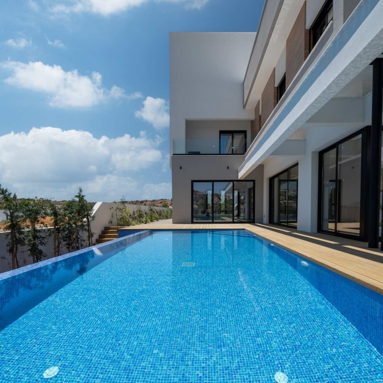 This contemporary 5-bedroom villa is nestled in the sought-after Agios Tychonas area of Limassol. Designed with contemporary elegance, the property includes five spacious bedrooms, four bathrooms, and a guest toilet, offering both style and functionality.