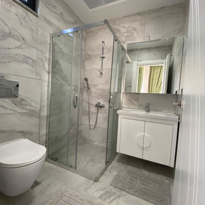Moreover, the complex includes both open and indoor pools, sauna, Turkish bath, fitness center, meeting room, children’s areas, and 24/7 camera surveillance.