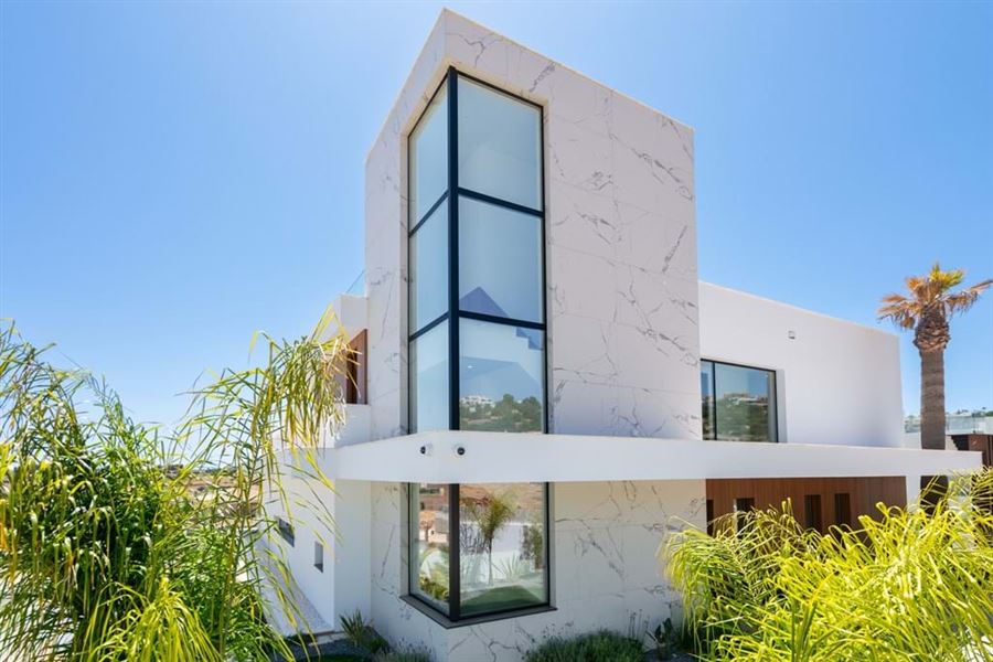 The villa features four spacious bedrooms, including a 16.4m² master suite with a bespoke walk-in wardrobe, while five sleek bathrooms boast premium natural stone tiles, reflecting sophisticated style and meticulous attention to detail. Other highlights include underfloor heating, integrated air-conditioning, a solar panel water heating system, LED lighting throughout, and thermal break aluminum window frames.