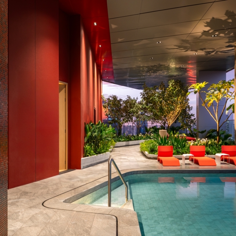 – Infinity-edge swimming pool (27th floor)