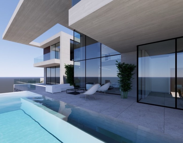 From nearly every room, enjoy panoramic 180º vistas of the Mediterranean, with terraces and balconies designed to maximize light and capture the natural beauty of Cyprus’s southern coast. The main entrance lies on the north side, with the garden, pool, and leisure spaces opening south toward the sea.