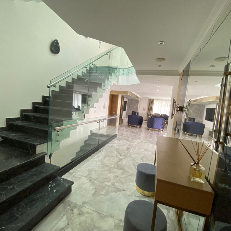 The moment you walk inside, the quality speaks for itself: marble floors that shine, wide glass panels that flood the rooms with light, and private wellness touches like a sauna and jacuzzi.