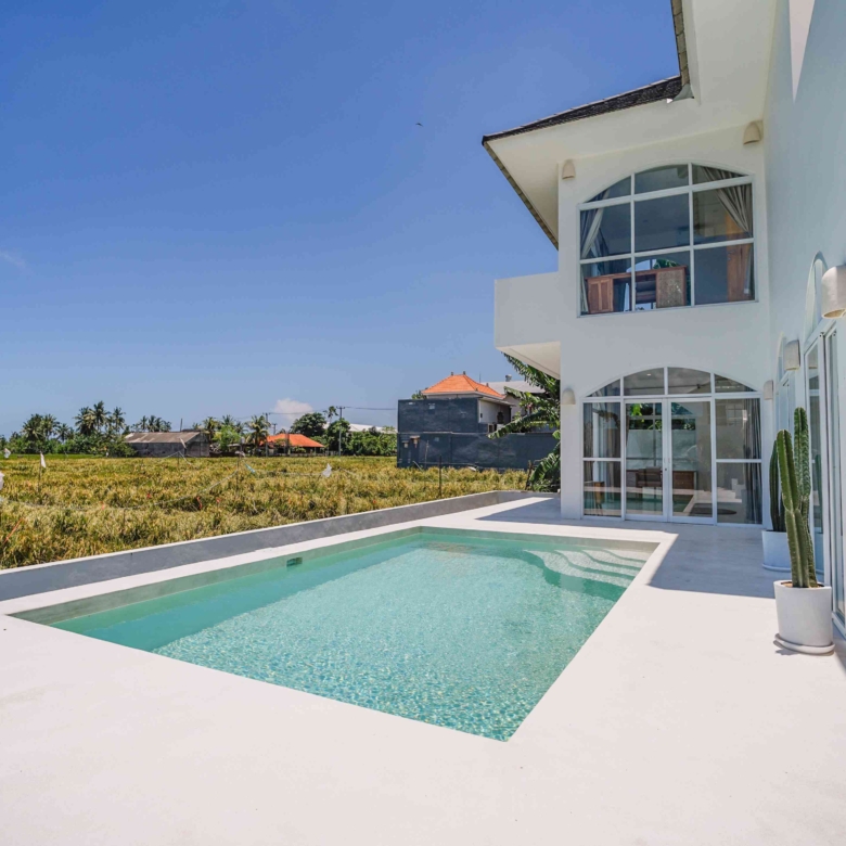 A sunlit Mediterranean-style villa in Kedungu featuring a private pool, rooftop terrace, and serene views of rice fields and the ocean. Just two minutes from Joshua District and Kedungu Beach, this 2-bedroom home captures the soul of Bali’s west coast — elegant, peaceful, and artfully designed. Fully furnished and turnkey ready, it’s a perfect blend of charm, location, and value.