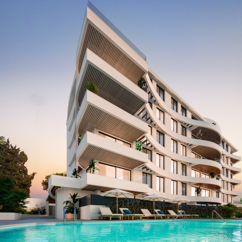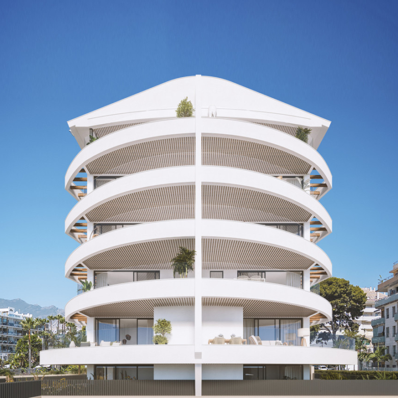 Situated in the vibrant heart of Benalmádena, just steps from the marina and the beach, this exclusive development blends bold architecture with coastal elegance. Its distinctive wave-like façade opens onto expansive terraces, inviting in the Mediterranean breeze and framing panoramic sea views.