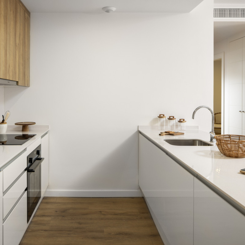 Space confortable and functional, 2 bedroom apartments have a total surface area which ranges from 88m², the smallest, to 105m², the largest. Individual parking places are located underground and there is lift access from the garage to the homes.