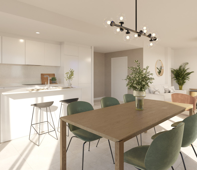 Designed with sustainability in mind, communal areas include landscaped gardens, swimming pool, gym and multi-purpose room. Homes are bright and well oriented, with porcelain flooring, large windows, quartz worktops and integrated appliances.