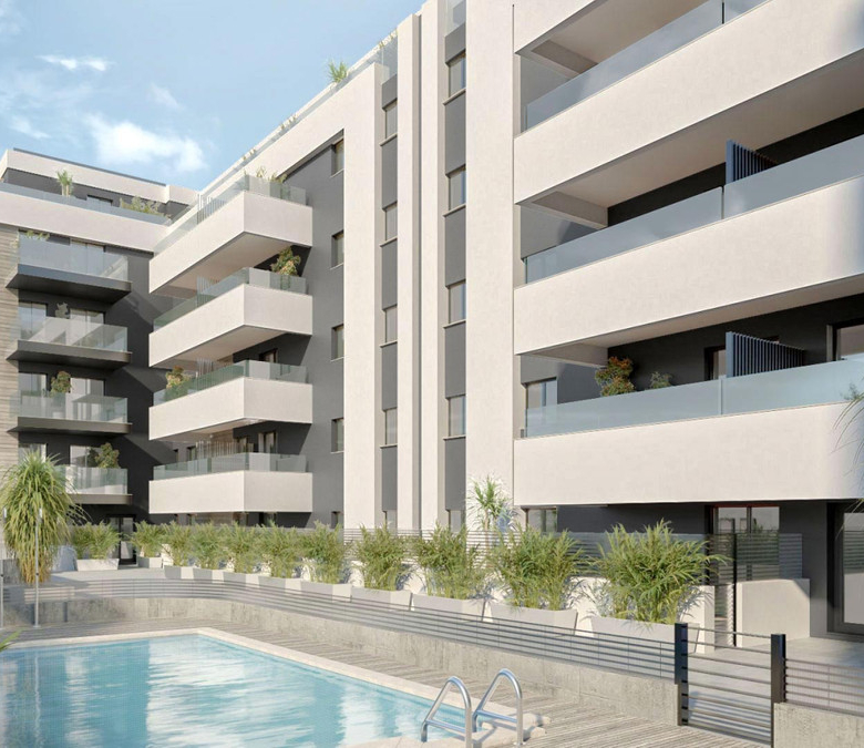 We welcome you to this Residential complex, a large multi-family building that offers 76 homes distributed over five floors plus an attic. The residential complex has common areas that include a social lounge, toilets, swimming pool, vegetation, and bicycle parking. In the basement floors, there are parking spaces for cars and storage rooms.