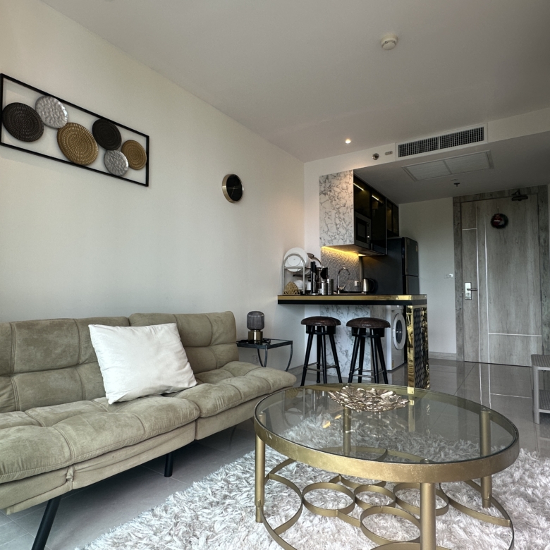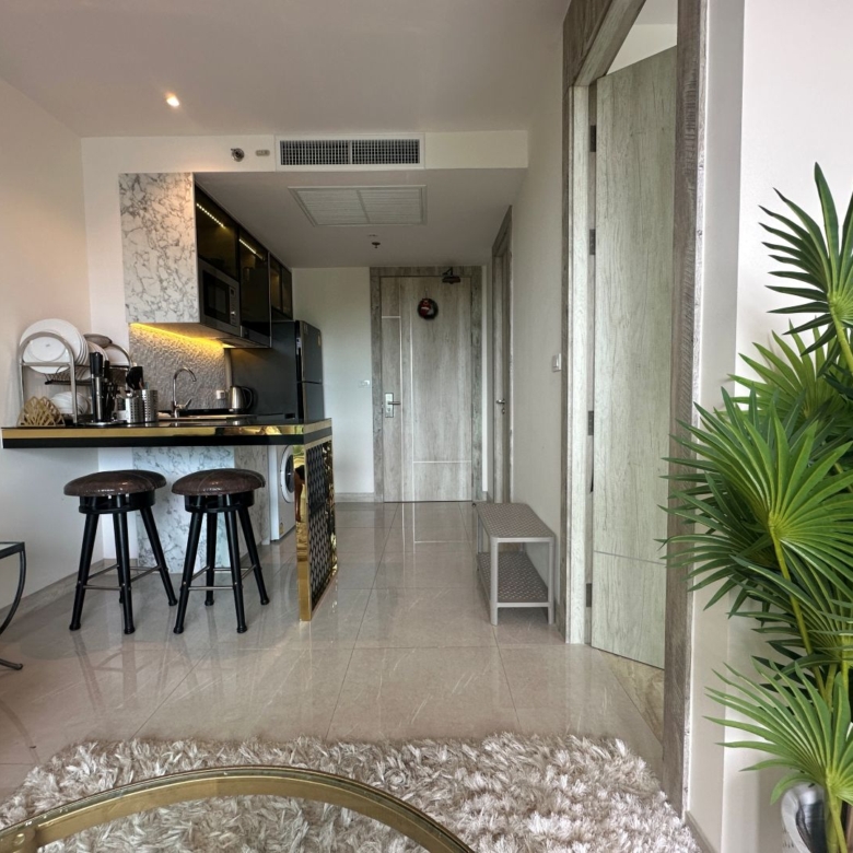 This fully furnished 1-bedroom condo is located at Riviera Monaco, a modern high-rise condominium in Na Jomtien, Pattaya. Situated on the 3rd and 4th floors, the unit offers 39 square meters of comfortable living space and a clear view of the pool. It is registered under foreign quota, making it eligible for full foreign ownership.