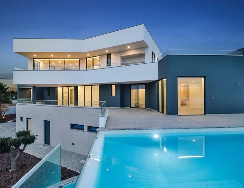 Set on a 1,099 m² plot, this three-storey contemporary home offers elegant design, high-end finishes, and breathtaking sea views.
